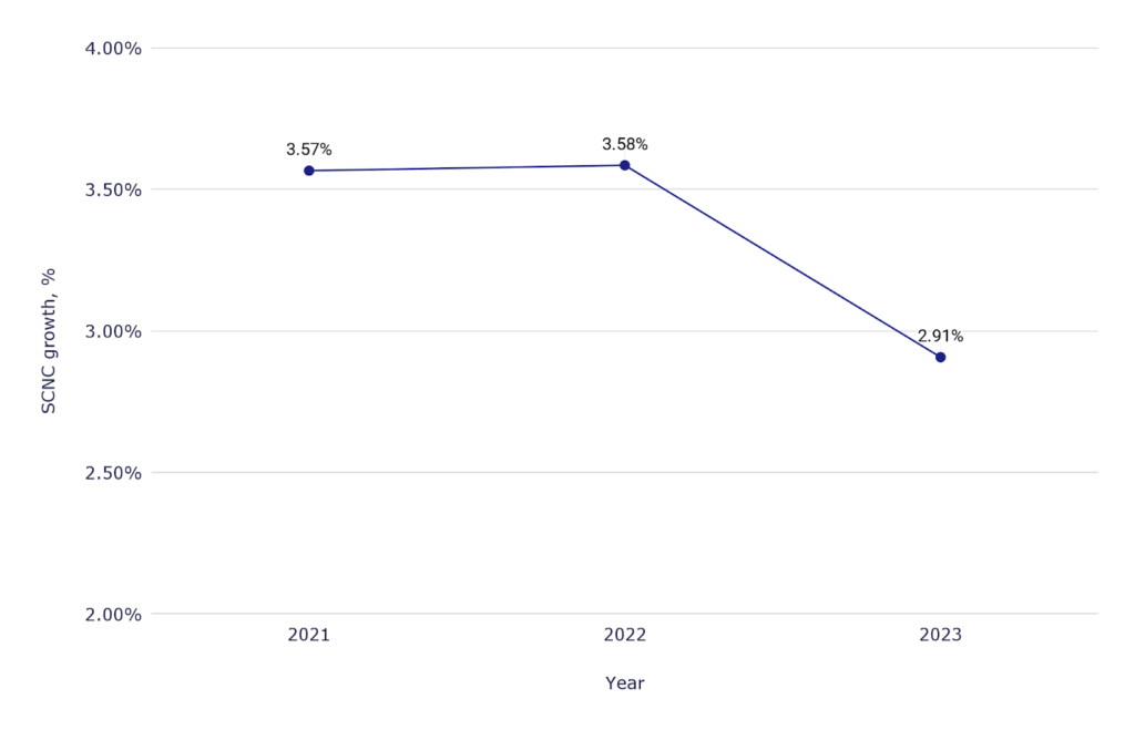 - Between 2020 and 2021 alone, the SCNC population grew by approximately 1.4 million people, marking a sharp year-over-year increase.
