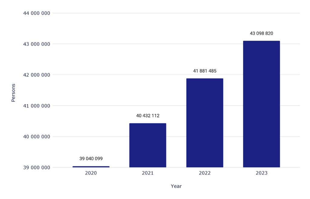 | 2023 | 24,832,764 | 57.6% | |